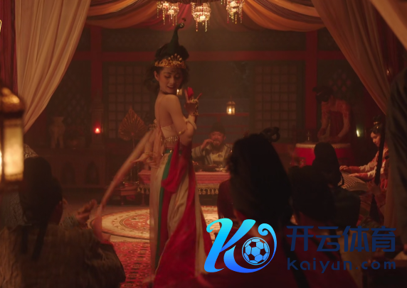 看似轻浅飘,却将西域衣饰的多彩飘逸应和在了昏黄的灯光下。