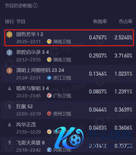 延伸上星湖南卫视,毫无压力成为同期段收视率冠军。