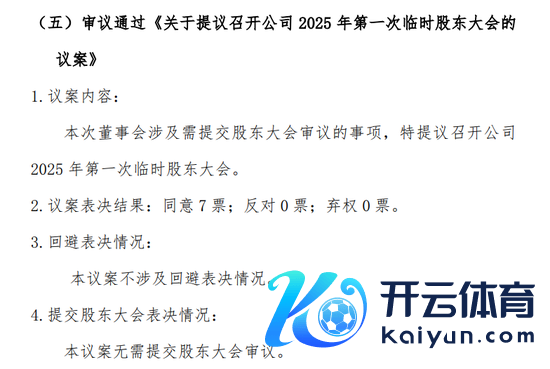 第五项《对于提倡召开公司2025年第一次临时鼓动大会的议案》全票通过。