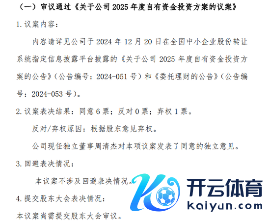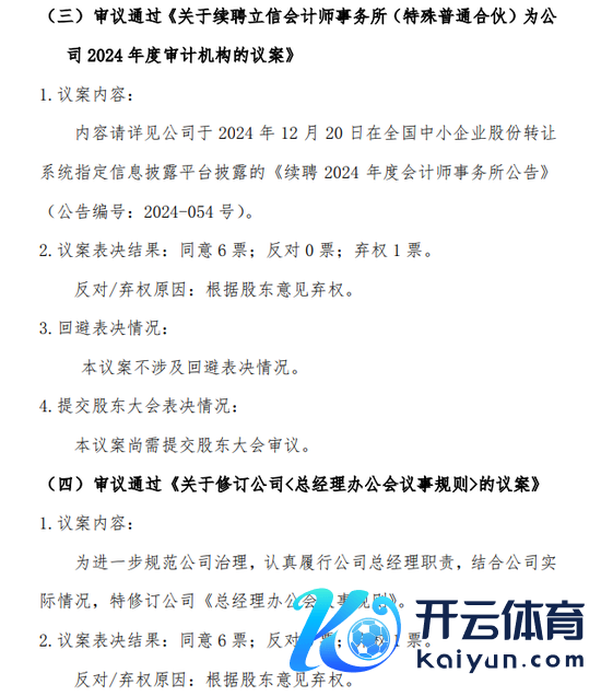 《对于续聘立信司帐师事务所(迥殊平凡结伴)为公司2024年度审计机构的议案》,《对于校阅公司<总司理办公会议事律例>的议案》。相同有1名董事“把柄鼓动想法弃权”。