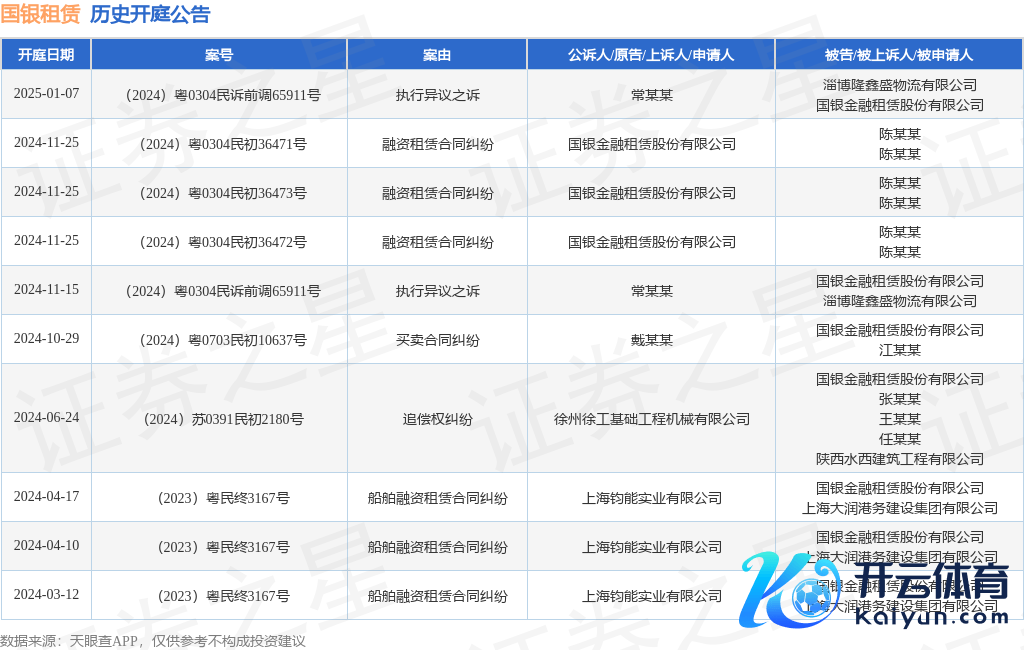本站音讯,把柄天眼查APP明白,近日公布了一则国银金融租出股份有限公司动作被告/被上诉东说念主的开庭公告开云体育,精通骨子如下: