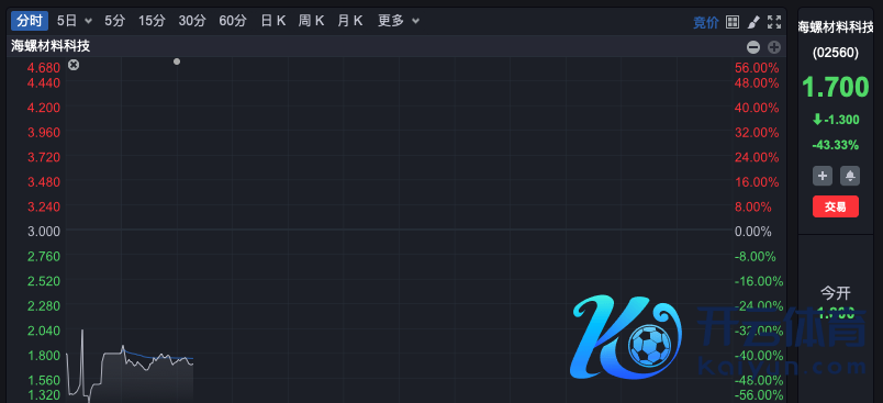 热点个股方面,海螺材料科技香港上市首日开盘破发,一度下落逾45%。