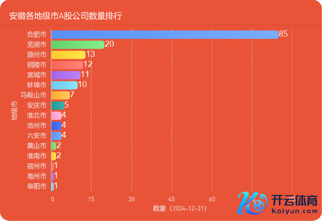 今天发布的是【2024年度安徽各地级市A股公司数目排名榜】。