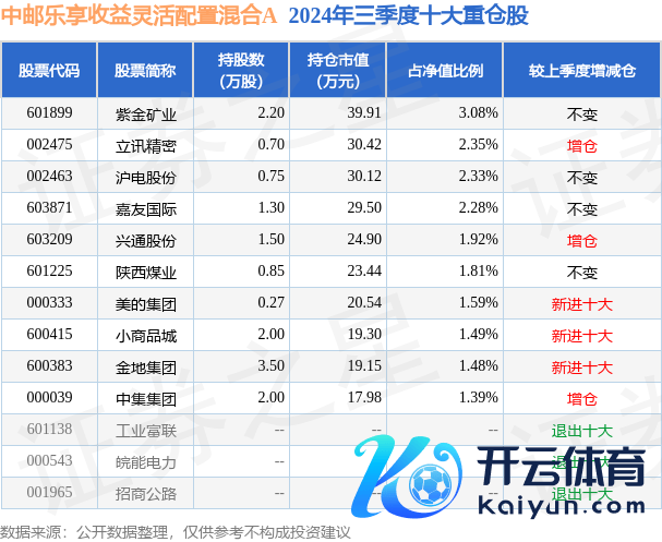 中邮乐享收益纯真建树夹杂A为夹杂型-纯真基金,把柄最新一期基金季报裸露,该基金钞票建树:股票占净值比36.92%,债券占净值比28.06%,现款占净值比35.92%。基金十大重仓股如下: