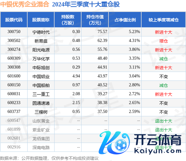 中银优秀企业夹杂为夹杂型-偏股基金,凭证最新一期基金季报表露,该基金钞票竖立:股票占净值比90.11%,债券占净值比4.9%,现款占净值比3.95%。基金十大重仓股如下:
