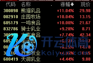 乳业板块相同午后走高,庄园牧场涨停,熊猫乳品涨超10%。