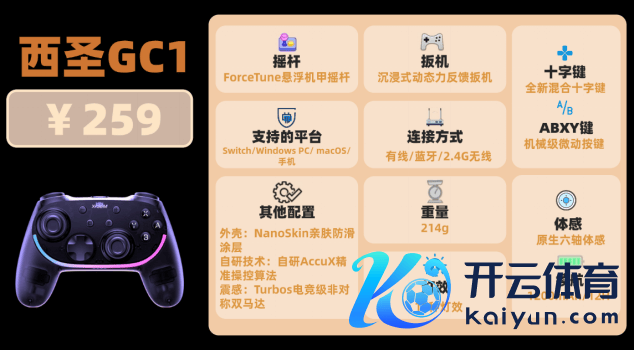 在确立推崇上,西圣GC1雷同强悍,搭载电竞级极速邻接引擎,1000Hz报恩率与智能抗侵略算法将输入蔓延降至0.5ms,维持2.4G、蓝牙和Type-C三模邻接,兼容Switch、PC、手机等主流斥地,收尾“所思即所控”。原生六轴体感传感器可捕捉旋转、歪斜和挥动等动作,1ms级低蔓延与1:1映射带来千里浸式操控体验。手柄缠绵轻量化(214g)、握角科学(15°)、NanoSkin亲肤防滑涂层贴持型,握持温暖褂讪。半透明幻雾晶透机身皆集RGB灯效和10种炫酷模式,科技感全都,同期兼具耐磨与防指纹性能,让手柄不仅手感极佳,也十分赏心面子。