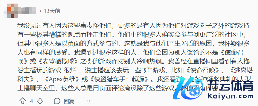 毕竟大伙平时就正常玩个游戏,推断打算上也大多图求一个文娱,没意义因此被一些爆典言论波及。