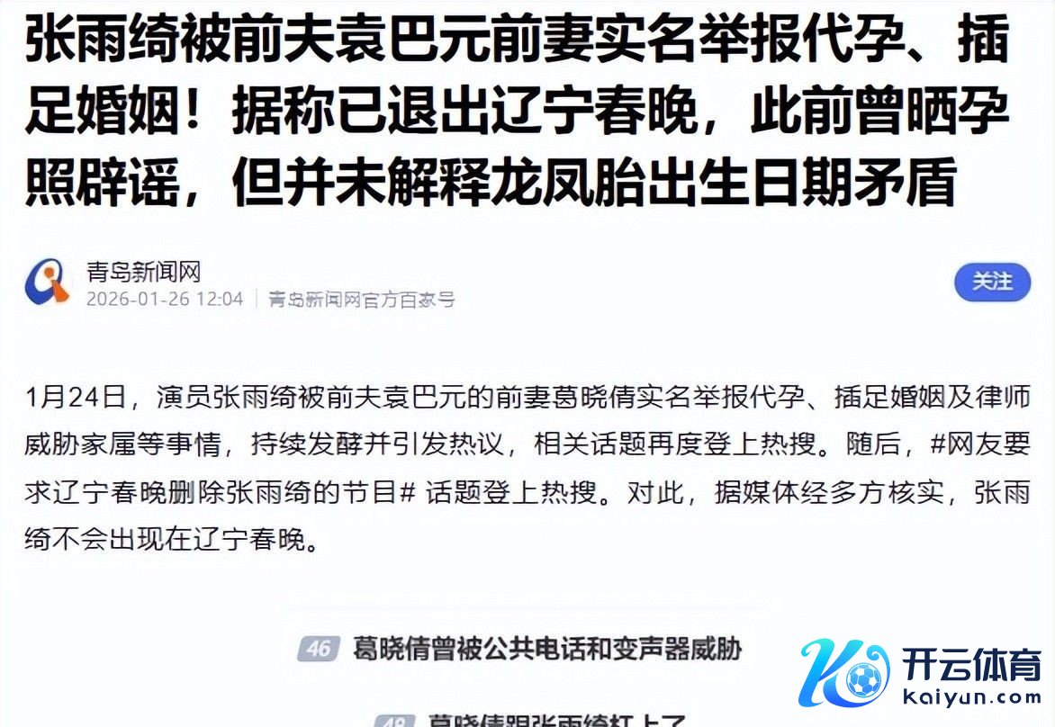 张雨绮被前夫袁巴元前妻实名举报D孕、进入婚配!据称已退出辽宁春晚,此前曾晒孕照辟谣,但并未解说龙凤胎缔造日历矛盾.青岛新闻网.2026-01-26