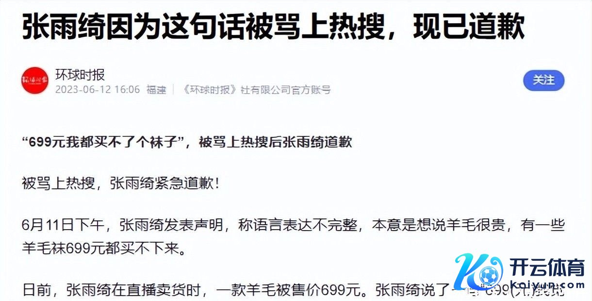 张雨绮因为这句话被骂上热搜,现已说念歉.环球时报.2023-06-12