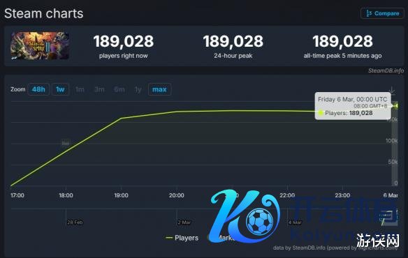 而游戏的优秀不仅体当今评价上,也体当今了热度上,阐发SteamDB的最新数据,《屠戮尖塔2》发售以后,其在线东谈主数峰值达到了近19万东谈主(189,028)东谈主,信服跟着周末沐日的到来,《屠戮尖塔2》的在线东谈主数一定能再攀缘峰!