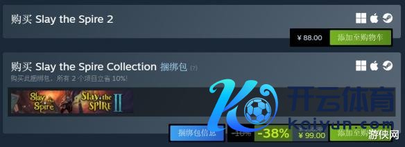 《屠戮尖塔2》国区的售价为88元,你也不错购买包含《屠戮尖塔1》和《屠戮尖塔2》“Slay the Spire Collection”系结包,立减38%,只需东谈主民币99元!有敬爱敬爱的游侠网友不错来一发。