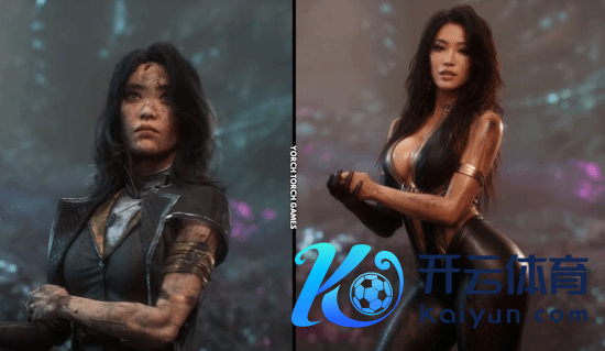 推主@YorchTorchGames晒出一张对比图,将脚色吕涅原来的造型,PS成了玄色紧身开胸装,配文写谈: