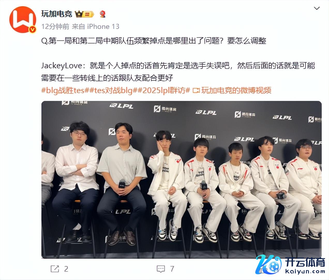 另外被问到第一局和第二局王人是上风时常给契机,JKL也承认:掉点是选手的个东谈主舛误,需要在转线上和队友作念好和洽。