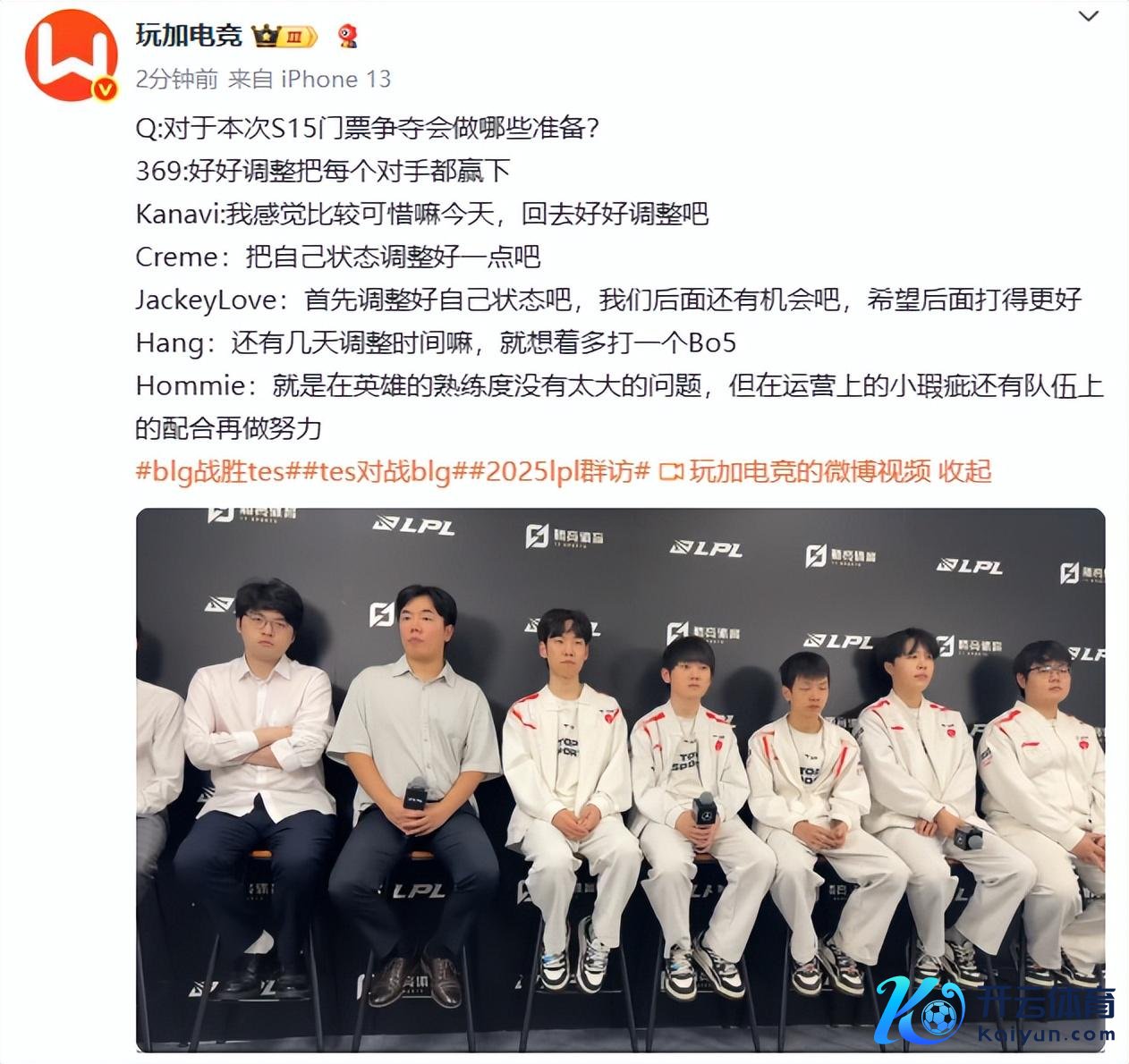 BLG在LPL季后赛胜者组据赛中,以3-2的战绩打败TES开云(中国)kaiyun网页版登录入口,晋级决赛,而况拿到了S15全国赛的履历。而关于TES来说,这场比赛原来可以舒服拿下,然而太多舛误,导致打满而况痛失奏凯,赛后TES的官博也炸了。