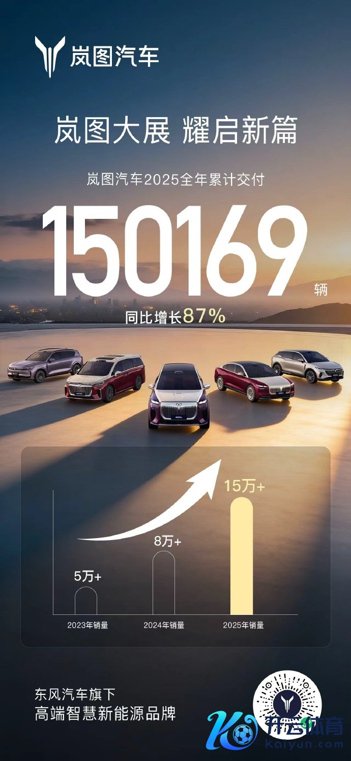 岚图汽车2025年累计请托15万辆,同比增长87%岚图汽车2025年累计请托15万辆,同比增长87%