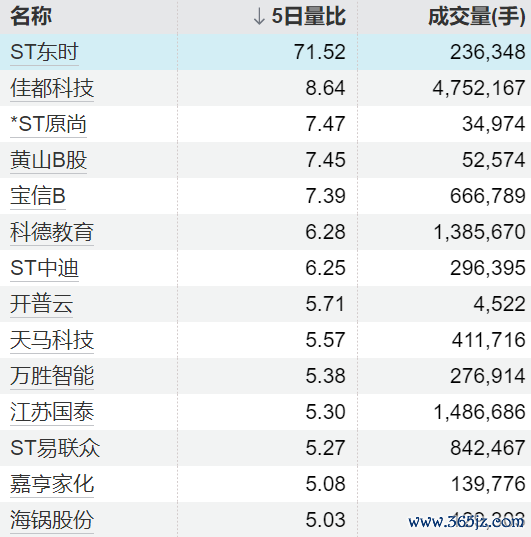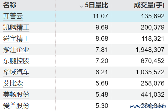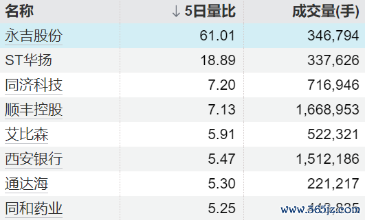 9只个股5日量比卓越5倍